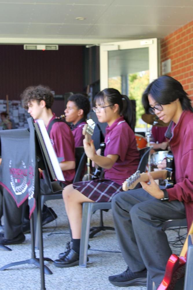 Our music students added to the atmosphere with outstanding performances, including singing, band pieces, and piano playing, while also inviting younger visitors to participate and experience the joy of music firsthand. Meanwhile, our Food and Hospitality students kept everyone energised with a delicious selection of homemade biscuits, and our Café Culture students impressed by preparing over 100 coffees and 60 hot chocolates across the evening.